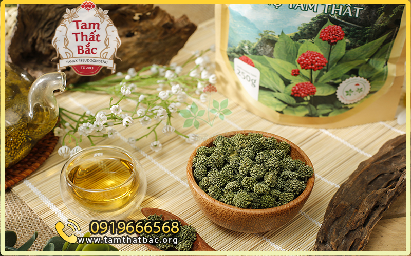 Cách pha trà tam thất: Pha trà bằng nước sôi, hãm 5 – 10 phút. Có thể kết hợp cùng hoa cúc hoặc mật ong để tăng hiệu quả.